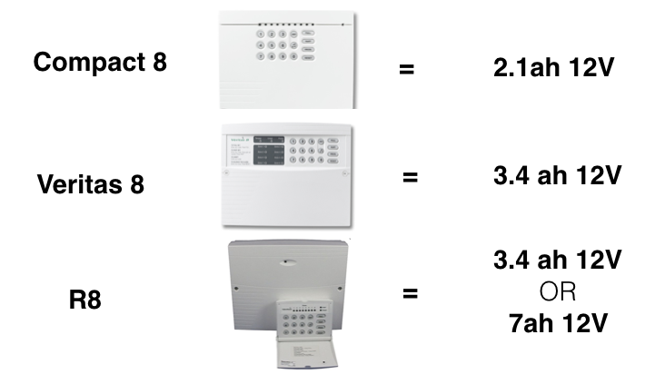 If you’ve got a Compact 8 (i.e. the smallest Veritas alarm) you should buy the smallest battery – i.e. the 2.1ah battery.  BUY 2.1ah BATTERY HERE >>