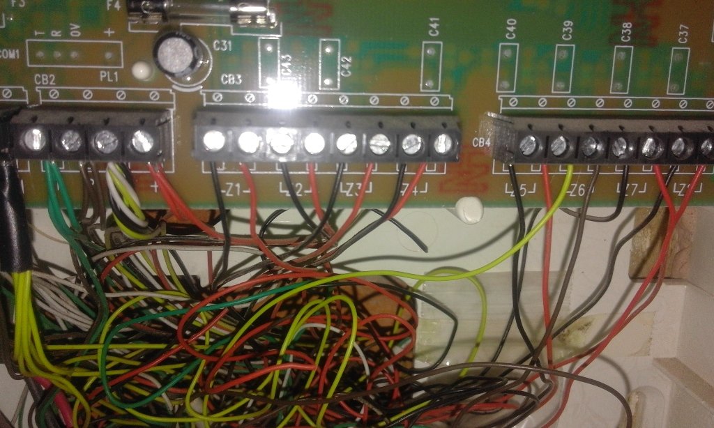The reason I say ‘confidence to deal with both electronics and electricity’ is that as with most alarm panels, the inside of an alarm panel can be a spaghetti soup of wires (see photo below) – wires connected to both 12V circuits and also 240V, and obviously you don’t want to make any errors in this type of scenario as you’ll either