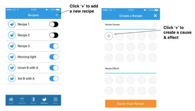 For example, you could create a recipe that said ‘turn on hall light when front door is opened & alarm is set’ – which would mean that every time you arrived home and opened the front door, your hall light would turn on so that you could see what you’re doing.